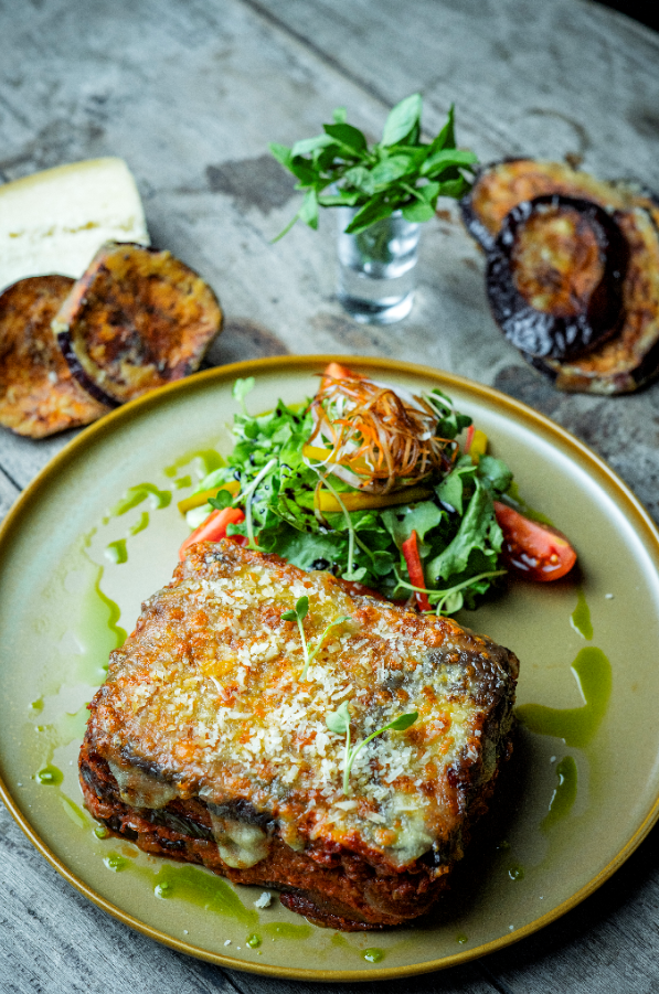 The classic Italian dish with layers of tender eggplant, rich tomato sauce, Parmesan, and mozzarella. It is the kind of comfort food that deserves a slow, appreciative meal rather than a rushed bite. The aroma alone is inviting and promises authenticity. The light fried eggplant, having soaked up the sauce, has crisp edges beneath the softness, almost melting on the tongue. Gooey mozzarella threads stretch temptingly while finely grated Parmesan adds a gentle granular bite on top. This dish is thoughtfully complimented by the mixed lettuce salad; crisp and hydrating, punctuating the creaminess of the Parmigiana perfectly. Visually the dish is a feast for eyes too.