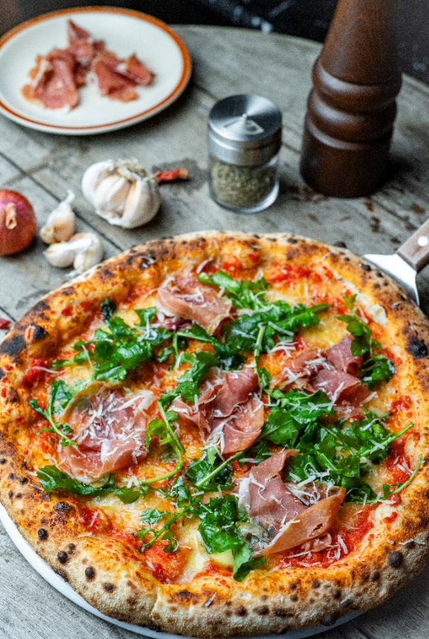 Watching the Prosciutto and Rocket being freshly prepared and baked right in front of you instantly heightens the anticipation. The Prosciutto and Rocket pizza captivates you with simplicity and freshness. This pizza boasts a light yet satisfying flavor profile. The base is a vibrant tomato sauce, tangy yet balanced, that provides a bright foundation without overpowering the other ingredients. Creamy mozzarella covers the crust with just the right amount of richness, melting into the sauce and creating those irresistible strings with every slice. Once baked, the pizza gets topped with thinly sliced, 30-month aged prosciutto. These delicate prosciutto brings a subtle saltiness and feels luxurious without being heavy. Generous heaps of fresh arugula are added atop. The drizzle of olive oil enhances the aroma and ties all the elements together, giving the pizza a smell of fresh delicacy.